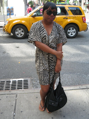 (Dress: Mystique; Sandals: Steve Madden; Bag: Linea Pelle; Sunnies: Ray-Ban; Earring: Tia's Place)